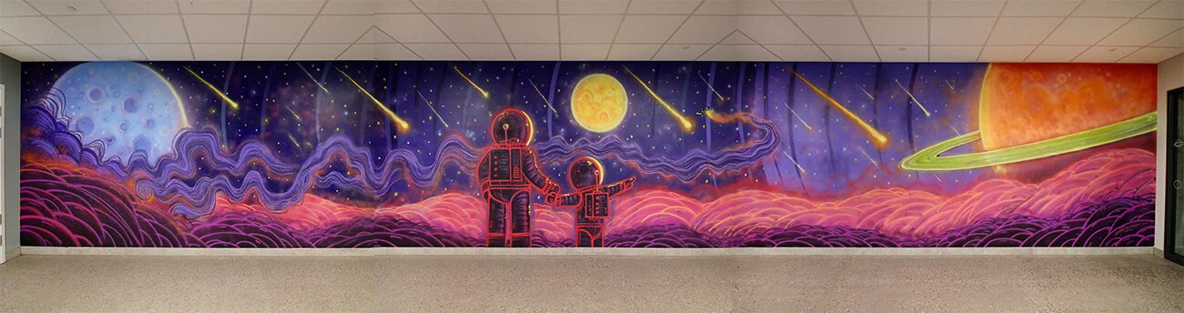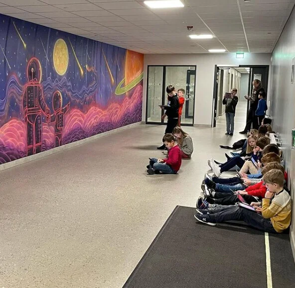 Holmen Skole Holmenkollen, Oslo, NorwayYear: 2021Format: 2.5m * 15m Technique: Acrylic & spray paintClient: Oslo Kommune
